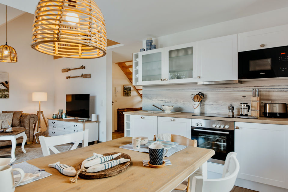 Die zeitlos und modern im maritimen Stil eingerichtete Maisonette-Wohnung befindet sich im Obergeschoss des Hauses. Die Wohnung ist sehr hochwertig, geschmackvoll und kreativ eingerichtet, nachhaltige Materialien schmücken Ihr Feriendomizil.